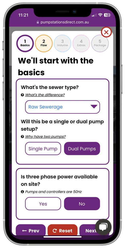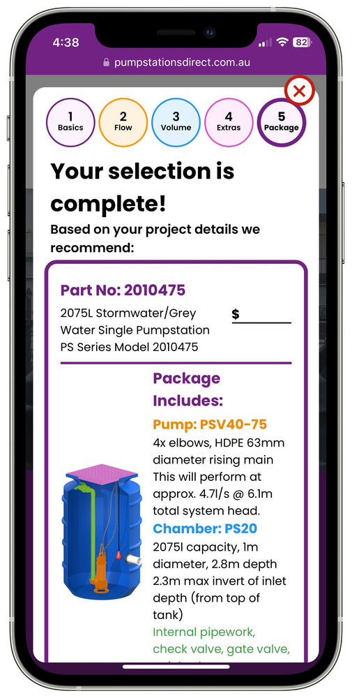 We have developed Australia’s first Online Pump Station Selection Tool, designed to save you time and money with seamless, risk-free customisation and fast delivery across Australia. Our Pump Station Selection Tool allows you to get your quote yourself within minutes, without needing to contact a salesperson or wait for a reply!